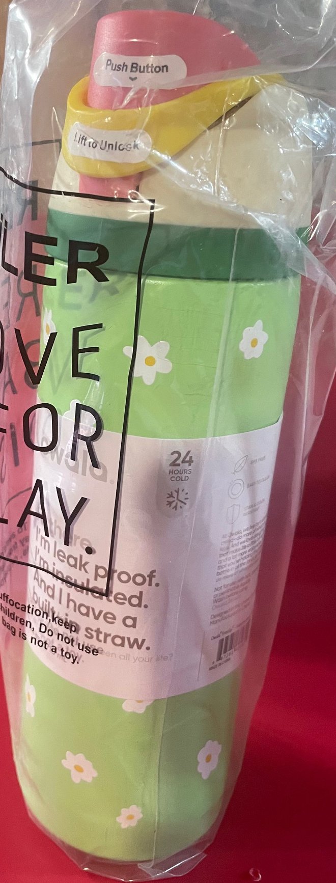 24 oz. Owala Free Sip. Green Flowered. Perfect for summer days.