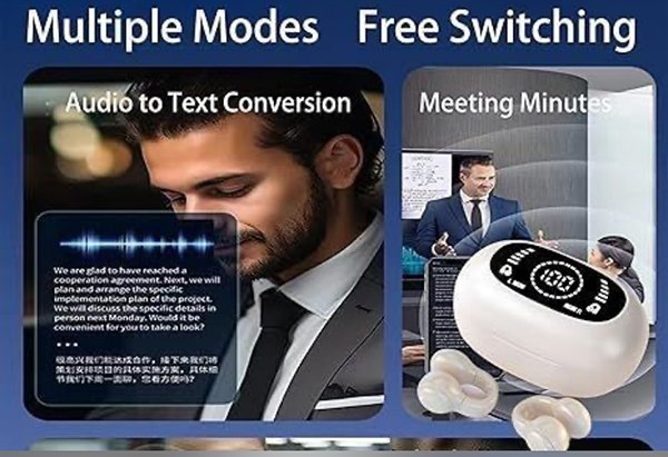 Bluetooth Earphones with LED Screen, Audio to text conversions. Multiple Modes, free switching. Two way ear clips.