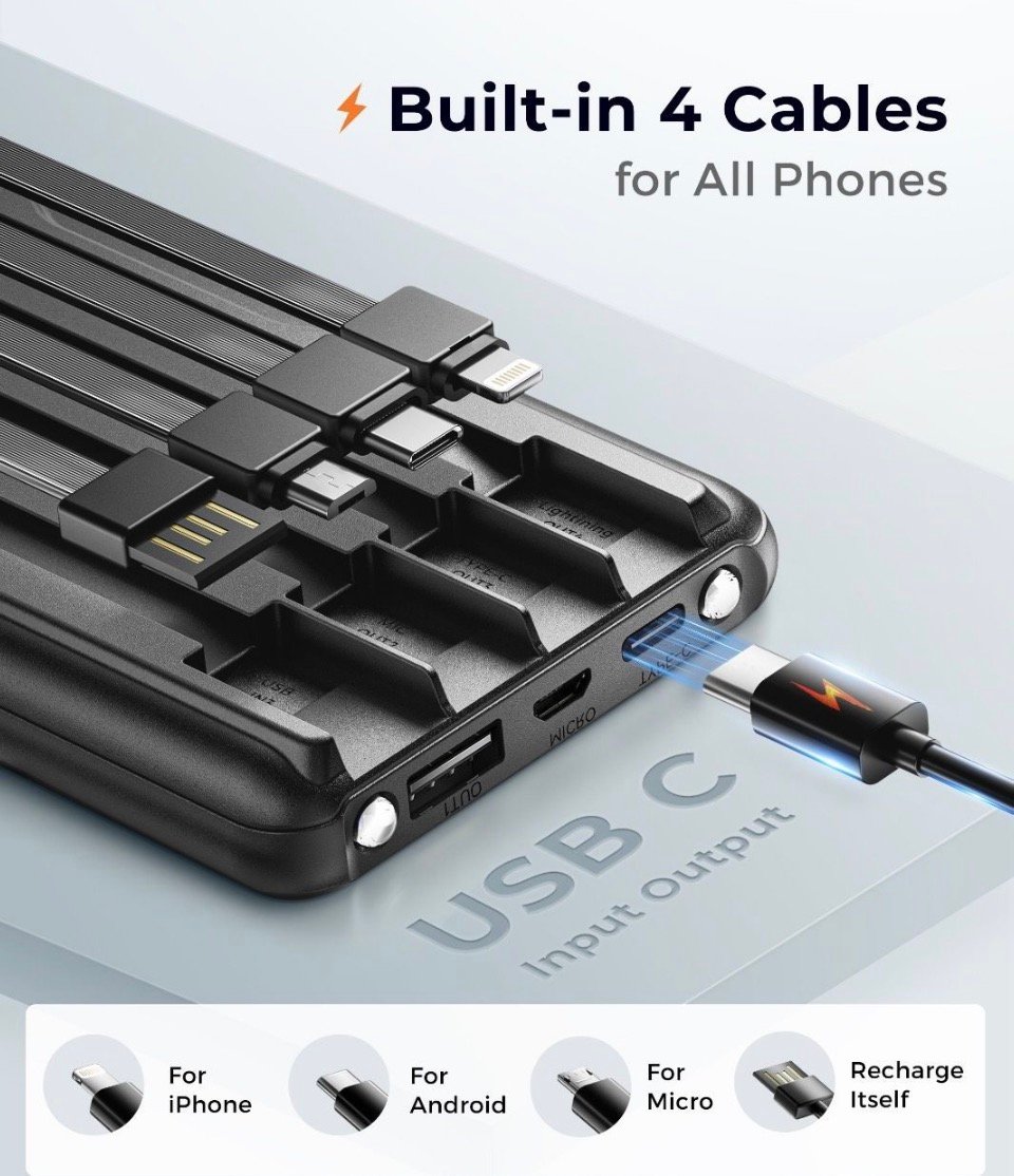 Great Power Charging Block with 4 charging cords. Don’t be caught without the wrong cord to charge your item.