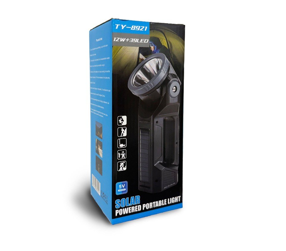 Solar Powered Light. Great for outdoor use without having to worry about plugging in to charge. Great for camping or hunting. Extremely bright light.